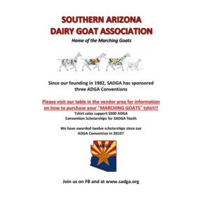 The ADGA Annual Convention serves as both the yearly convention for the American Dairy Goat Association (ADGA) and the ADGA Annual Meeting. It is held each October or November and the location is determined one to two years in advance by ADGA Annual Meeting Long Range Committee.